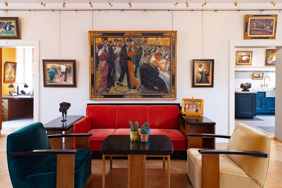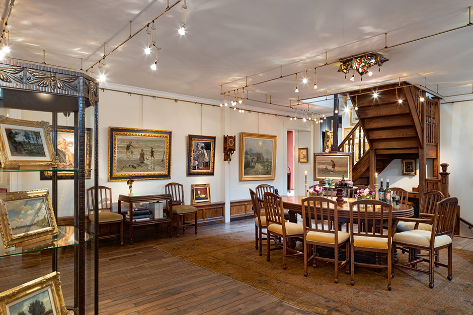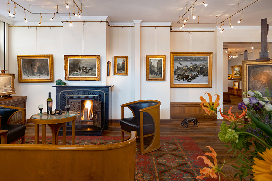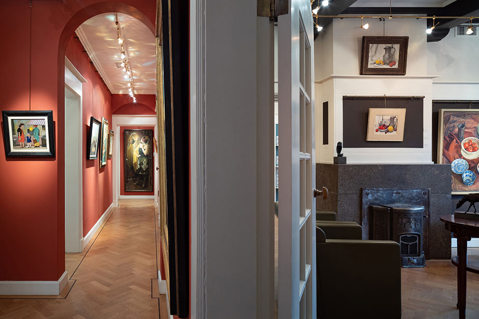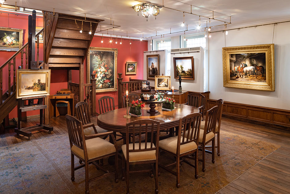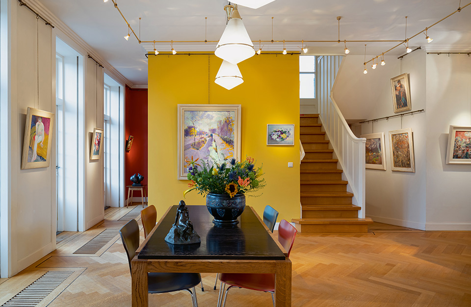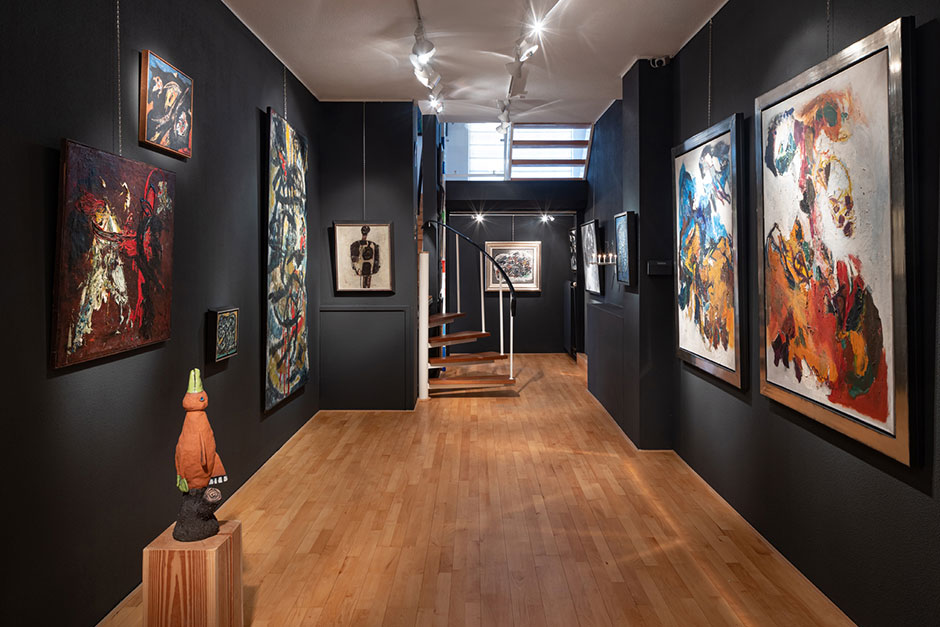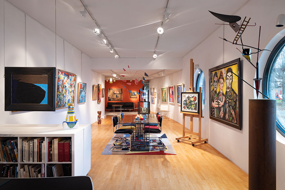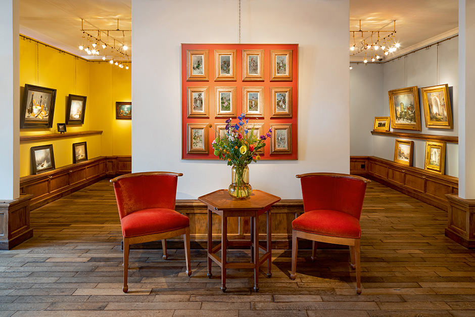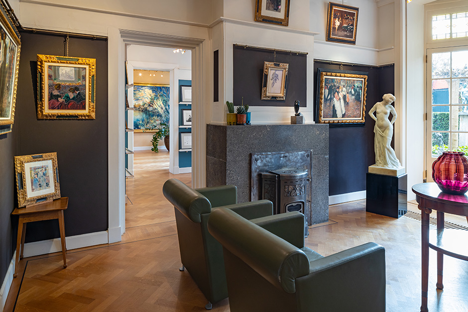 De omvangrijke collectie schilderijen en beelden is geëxposeerd in de galeries aan de Notaris Fischerstraat in Ede. Het interieur van elk van deze twee panden heeft een inrichting die aansluit bij de kunstwerken die er getoond worden. Het is een ‘gesamtkunstwerk’, alles is op elkaar afgestemd: kleurenschema, meubels, lampen, kleden en servies. Elke galerie is anders, u stapt steeds een andere wereld in. Voor ieder wat wils.