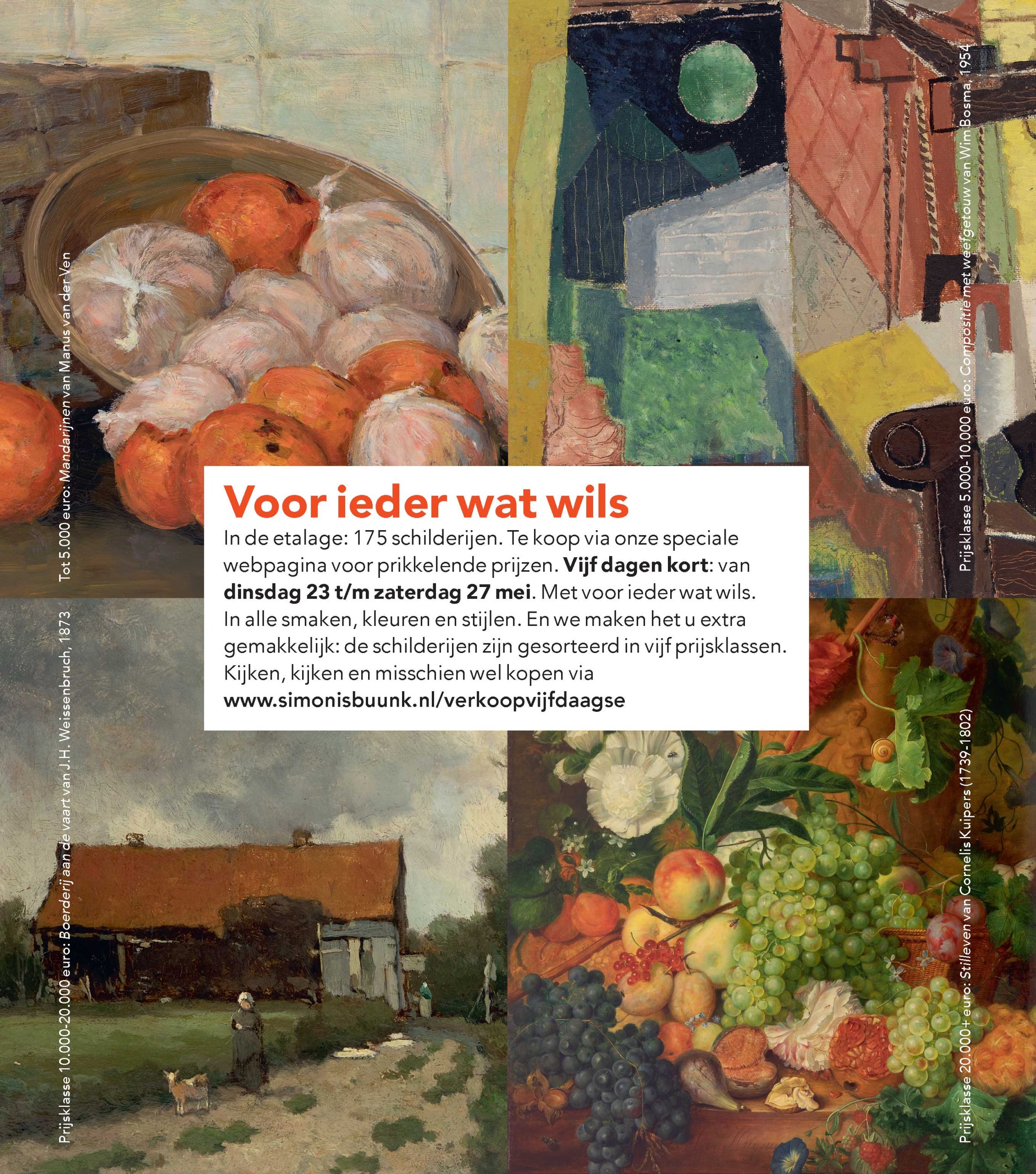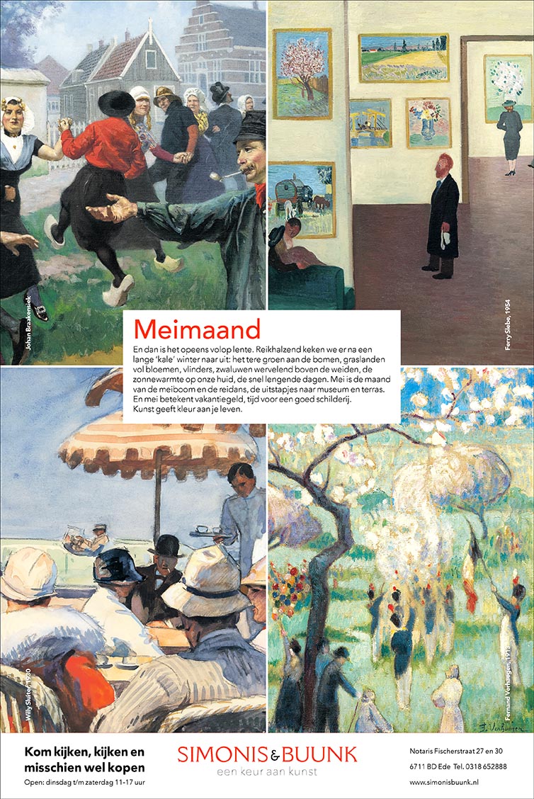 Stap in de wereld van Simonis & Buunk. Ontdek digitaal de collectie van ruim 3.500 schilderijen, aquarellen en sculpturen. Prijzen lopen uiteen van 1.000 euro tot en met 400.000 euro. De website is een uitnodiging om naar Ede te komen. Daar is alles live te kijk én te koop. Oog in oog is alles nog mooier.