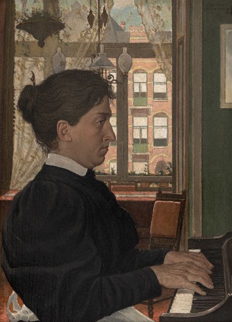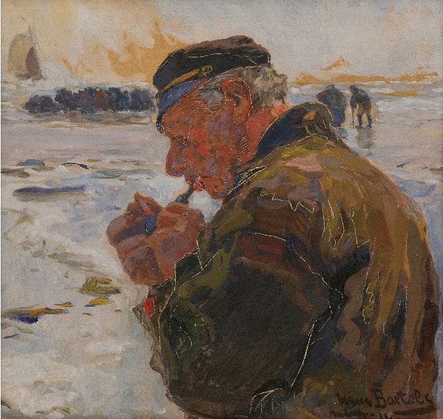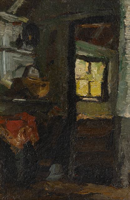 Mondriaan P.C.  | Interieur met wol spinnende boer, olieverf op doek 34,0 x 28,0 cm, te dateren ca. 1893-97 Mondriaan P.C.