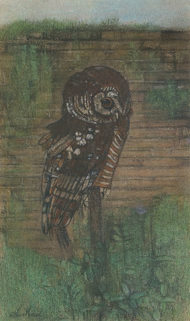 Jonge kauw, houtsnede op Japans papier 14,3 x 16,5 cm, gesigneerd r.o. (in potlood)