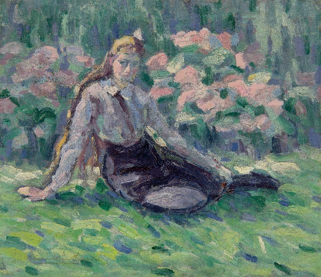 Landweg bij Beijum, olieverf op doek 28,0 x 37,5 cm, gesigneerd l.o. en te dateren ca. 1929-1931
