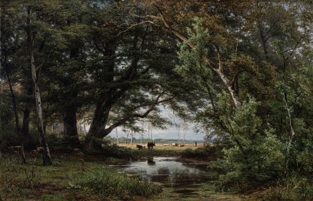 Haas J.H.L. de | Kalveren voeren, olieverf op paneel 22,7 x 33,0 cm, gesigneerd l.o. en gedateerd '63 Haas J.H.L. de