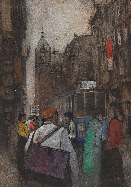 Gezicht op het Huis der Samenkomsten van de Doopsgezinden in Den Haag, aquarel op papier 30,9 x 22,7 cm, gesigneerd l.o. met initialen