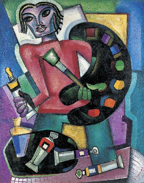 In het danscafé, olieverf op doek 85,2 x 70,1 cm, gesigneerd r.o.