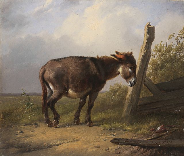 Rustend ezeltje, olieverf op paneel 14,1 x 16,6 cm, gesigneerd r.o. en gedateerd 1838
