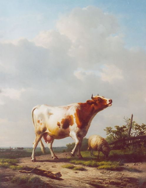 Jonge koe, olieverf op paneel 68,2 x 53,2 cm, gesigneerd r.o. en gedateerd 1853