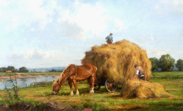 Wijngaerdt A.J. van | Landschap met vissershutten, olieverf op paneel 22,3 x 36,2 cm, gesigneerd r.o. Wijngaerdt A.J. van