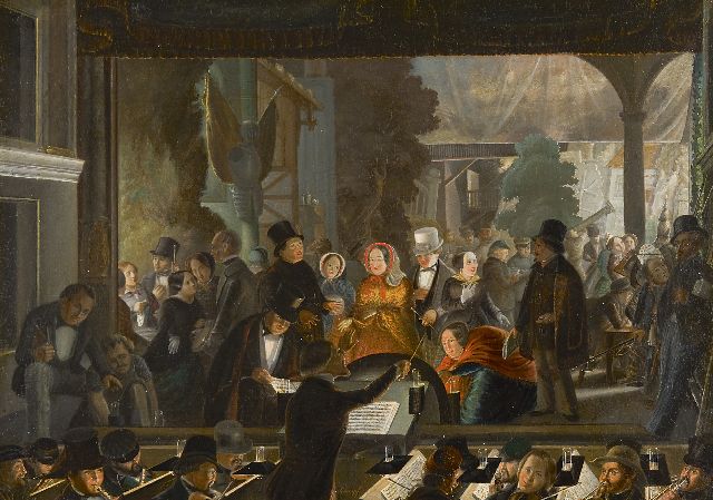 Winters ijsvermaak, olieverf op paneel 17,8 x 28,8 cm, gesigneerd l.o. en gedateerd 1861