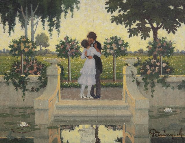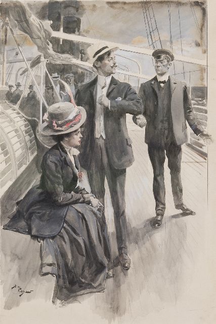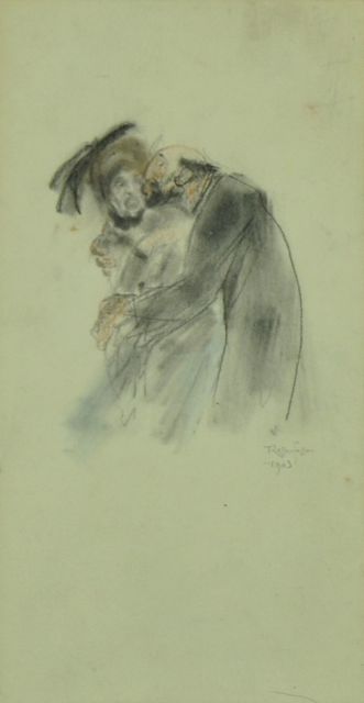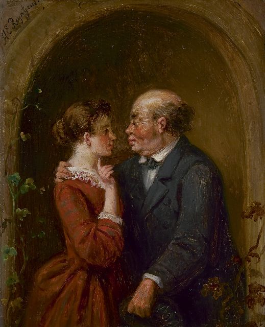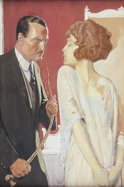 Scène uit het toneelstuk The Importance of being Earnest: Miss Prism en Cecily