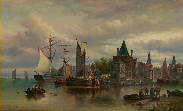 Gezicht op Amsterdam met de Nieuwe Brug en de St. Nicolaaskerk