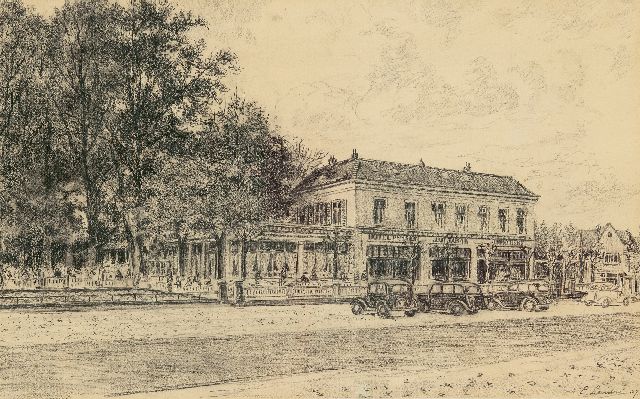 Louis Landré | Hotel Jan Tabak, Bussum, krijt op papier, 32,0 x 51,5 cm, gesigneerd r.o. en gedateerd '37