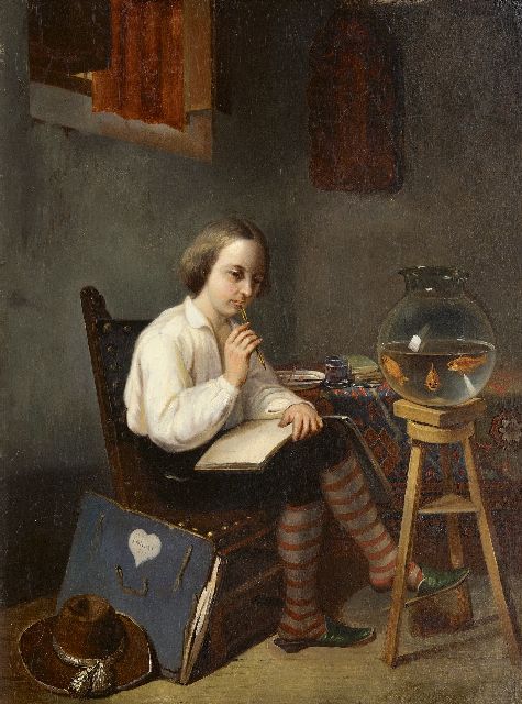 Het beoordelen van de tekening (mogelijk echtgenote van de schilder)