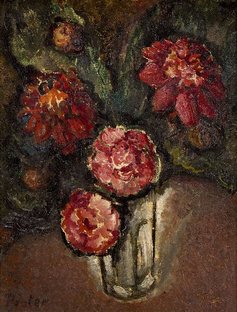Herfstchrysantjes, olieverf op paneel 41,0 x 30,1 cm, gesigneerd l.o. en verso