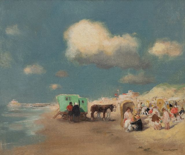 Wijk H. van | Vissers bij zonsondergang, olieverf op paneel 24,2 x 19,0 cm, gesigneerd l.o. Wijk H. van