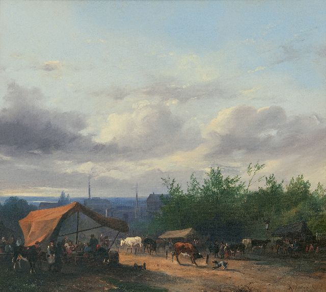 Familie bij kerkuitgang, olieverf op paneel 34,3 x 27,1 cm, gesigneerd r.o. en gedateerd 1832
