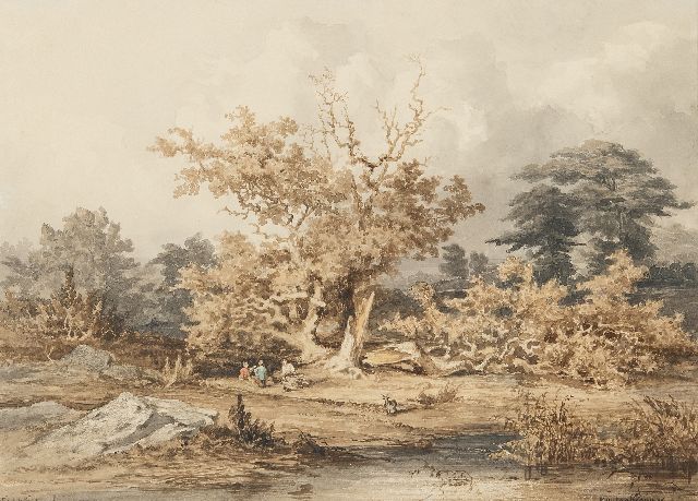 ...Voorzichtig, mannie, dat je niet nat wordt..., potlood en aquarel op papier 25,5 x 17,1 cm, gesigneerd l.o.