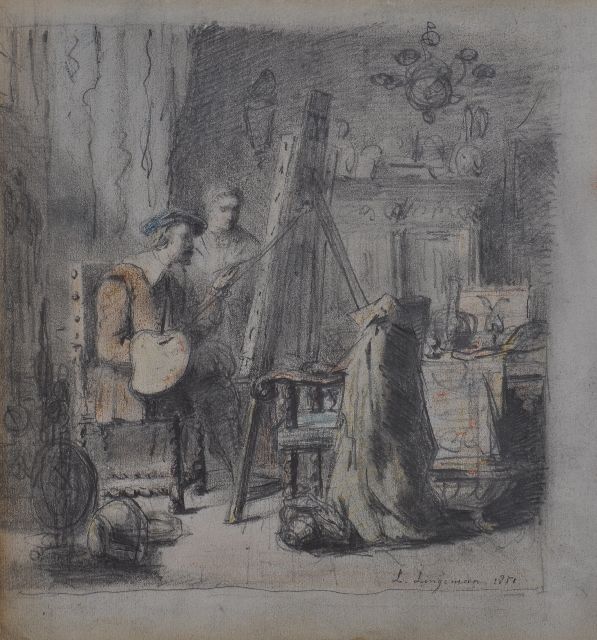 Atelierhoekje, aquarel op papier 35,4 x 25,0 cm, gesigneerd r.o. met pseudoniem 'Fanny Psicha'