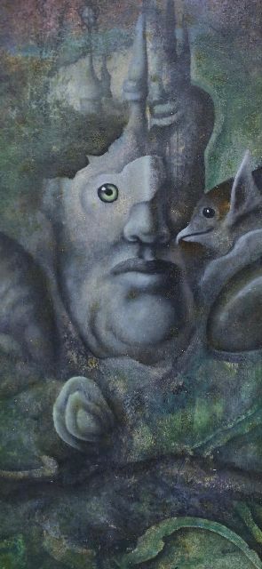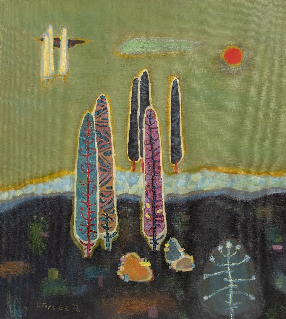 Zonder titel, olieverf op doek130,0 x 200,0 cm, gesigneerd r.o. in envelop en gedateerd 1990