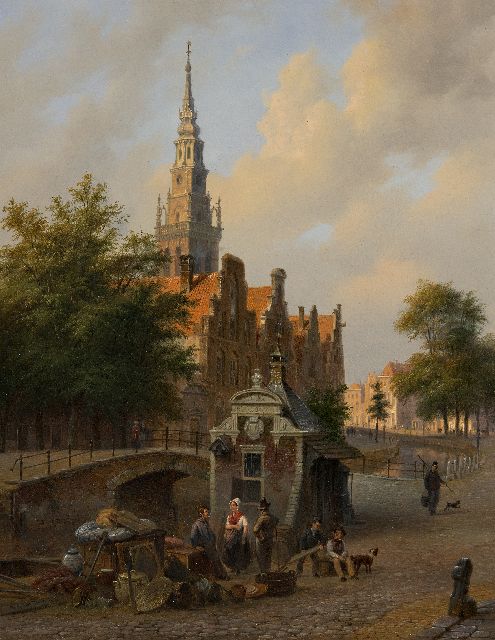 Marktplein in Kroměříž met het bekende koffiehuis Kavárna Brándova, Tsjecho-Slowakije,, olieverf op schildersboard38,3 x 53,0 cm, gesigneerd l.o. en gedateerd 1930