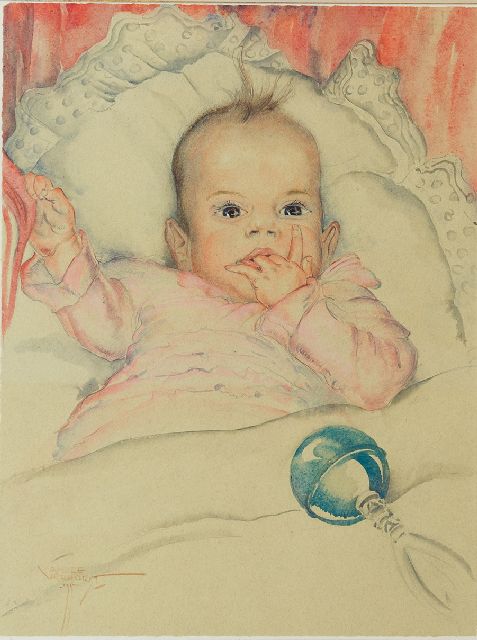 Een cadeau voor de dame, potlood en aquarel op papier 24,0 x 19,0 cm, gesigneerd l.b. en zonder lijst