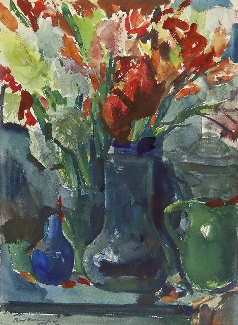 Gladiolen, aquarel op papier 74,0 x 55,0 cm, gesigneerd l.o. en gedateerd '48