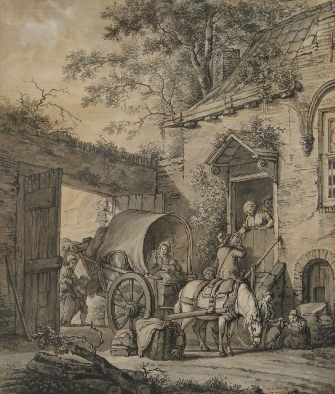 Abraham van Strij | Halte voor een herberg   (gesigneerd Van Noort), pentekening, 33,5 x 28,5 cm, gesigneerd r.o.