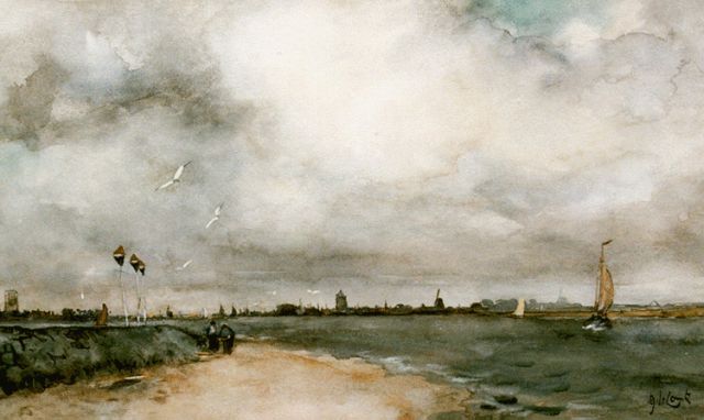 Adolf le Comte | Gezicht op Dordrecht vanaf de Merwede, aquarel op papier, 30,5 x 51,6 cm, gesigneerd r.o.