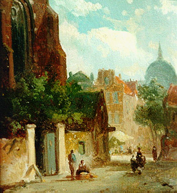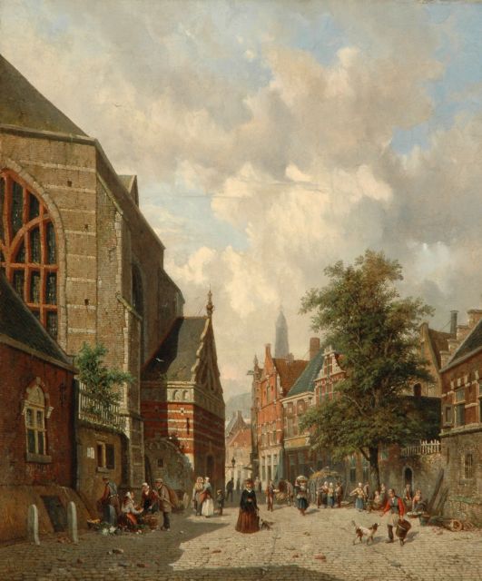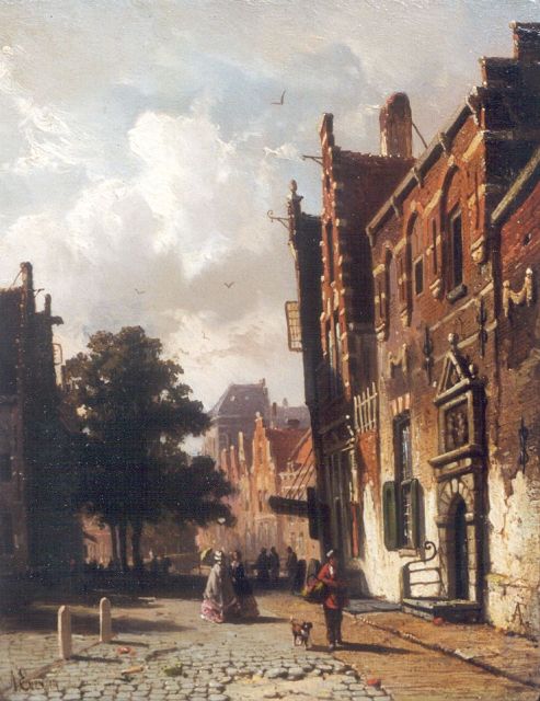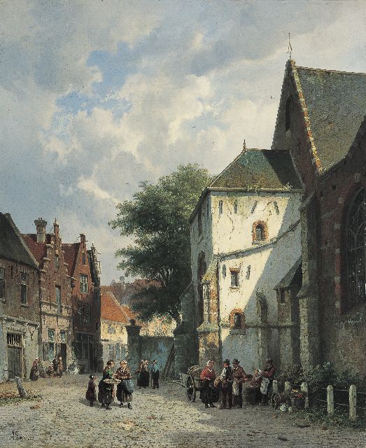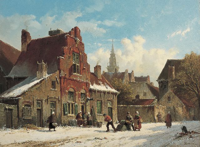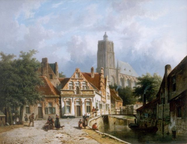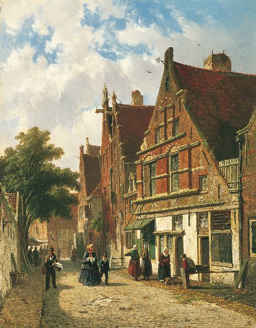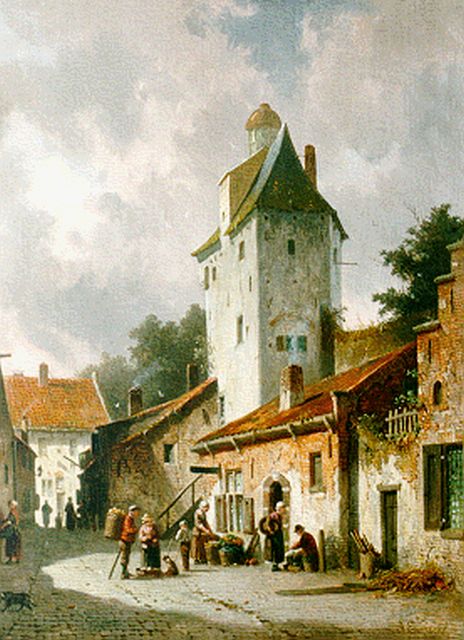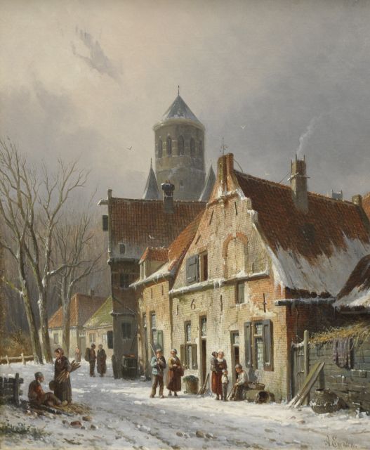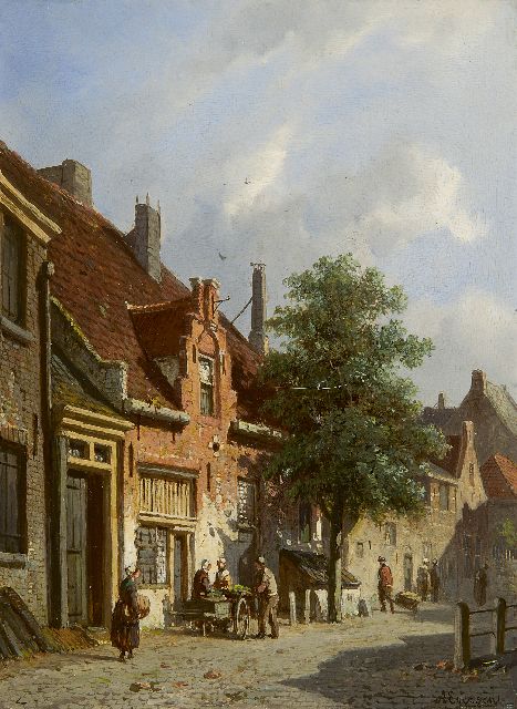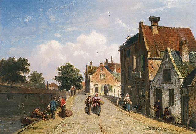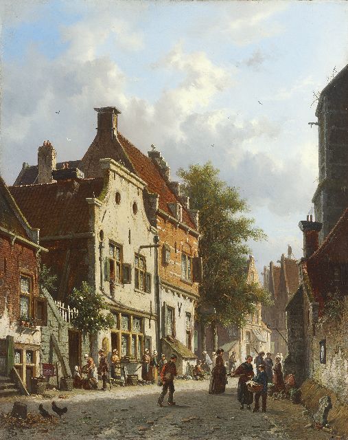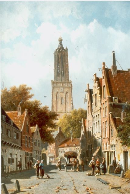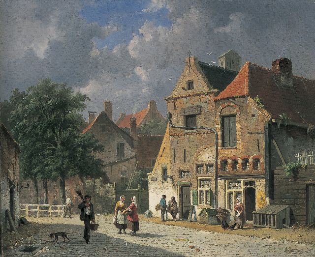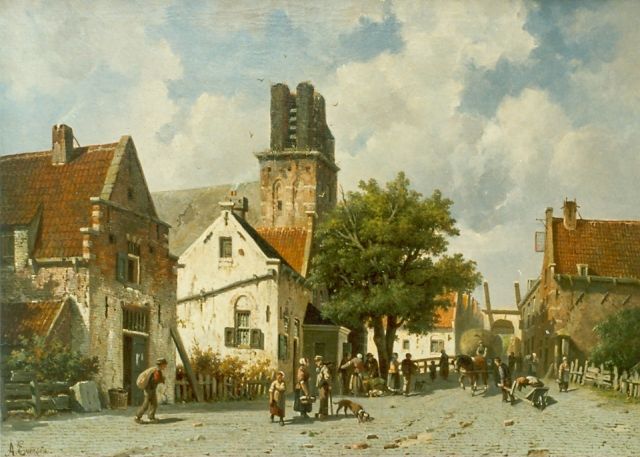 Adrianus Eversen gold als de meest begaafde leerling van de beroemde stadsgezichtenschilder Cornelis Springer. Van zijn leermeester nam Eversen de compositorische opbouw, uitwerking van details en het warme kleurenschema over. In de keuze van zijn onderwerpen was hij echter vrijer. Schilderde Springer vooral 'portretten' van bestaande gebouwen en stadsdelen, Eversen arrangeerde zijn dorpen en straatjes doorgaans zó dat er een fraai stadsbeeld ontstond.