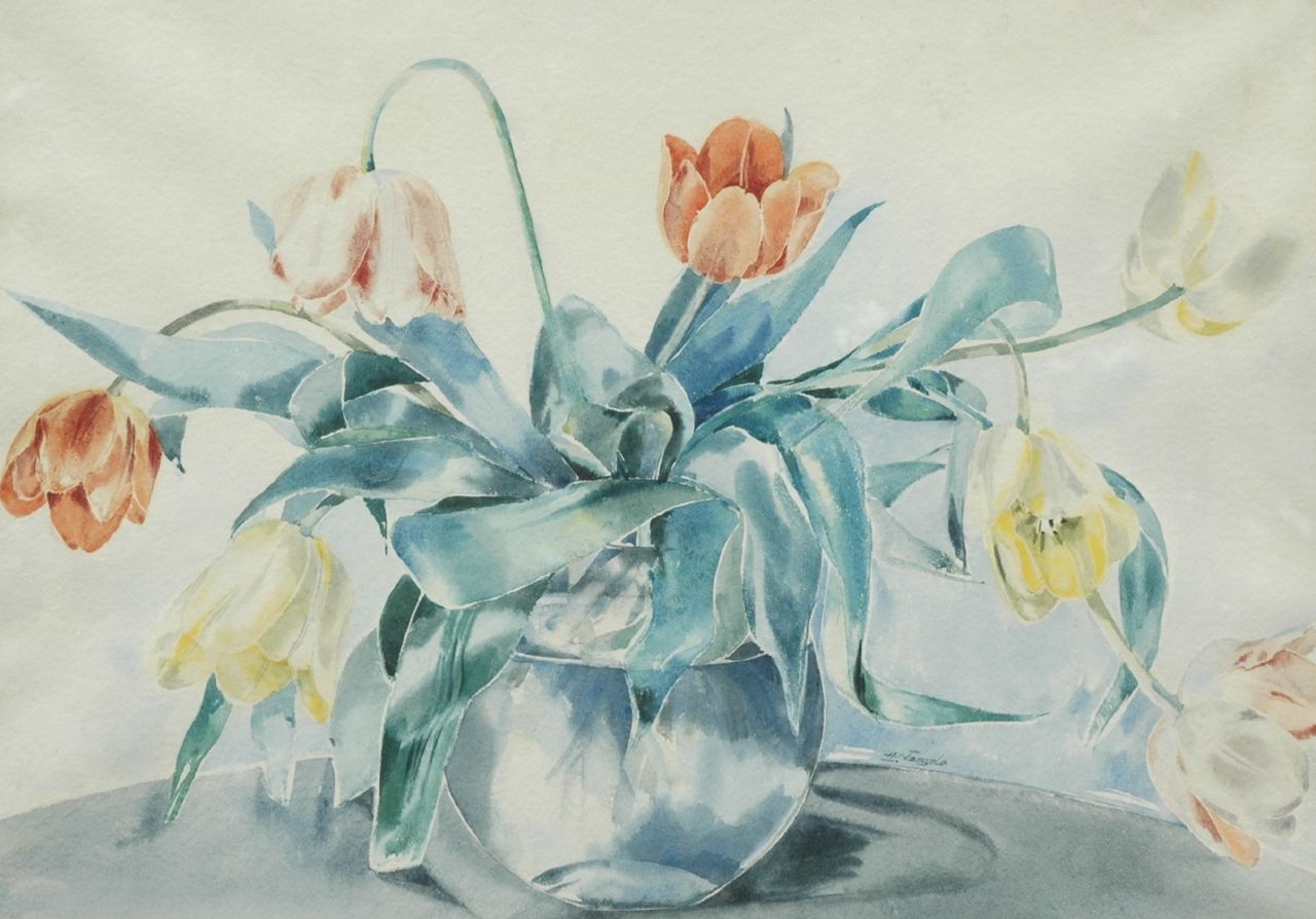 Alfred Naegele | Bloemstilleven met tulpen   (veilen), aquarel op papier, 44,0 x 54,0 cm