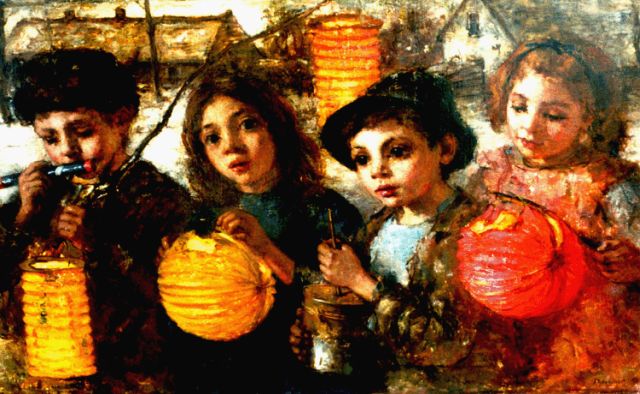André Broedelet | Vastenavond, olieverf op doek, 68,2 x 111,0 cm, gesigneerd r.o.