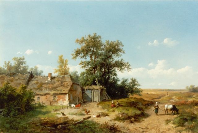 Anthonie Jacobus van Wijngaerdt | Boerenerf aan de rand van de hei, olieverf op paneel, 23,2 x 35,8 cm, gesigneerd r.o.