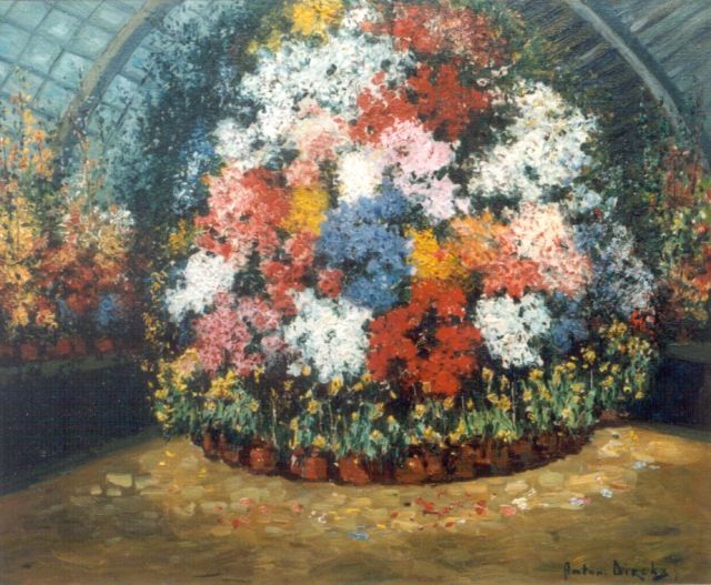 Het oeuvre van Anton Dirckx bestaat grotendeels uit impressionistische landschappen, stadsgezichten en havengezichten, in olieverf en aquarel. Bijzondere aandacht had Dirckx voor de Hollandse bollenvelden. Na zijn opleiding aan de Academie voor Beeldende Kunsten in Rotterdam maakte de kunstenaar een studiereis naar Italië, waar hij inspiratie opdeed voor verschillende schilderijen. Anton Dirckx werkte veel samen met Adriaan de la Rivière. Hij was ook graficus (etser).