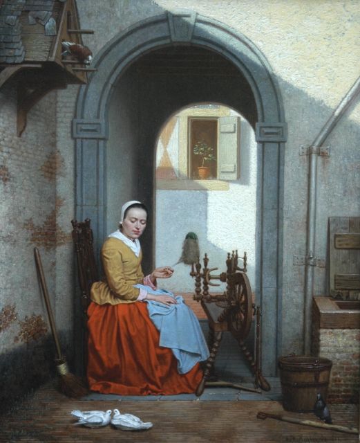 Antoon François Heijligers, geboren in 1828, was een kunstenaar die heel direct zijn inspiratie zocht in de Hollandse genrestukken van de 17e eeuw. Vooral zijn fijn geschilderde binnenhuisjes en figuurstukken doen wat sfeer en onderwerp betreft denken aan het werk van Pieter de Hooch. In het kleurgebruik en de uitwerking van de figuren toont hij zich een onafhankelijk en vaardig schilder. Heijligers werd geboren in Nederlands-Indië en woonde en werkte daarna voornamelijk in Geertruidenberg, Brussel en Den Haag.