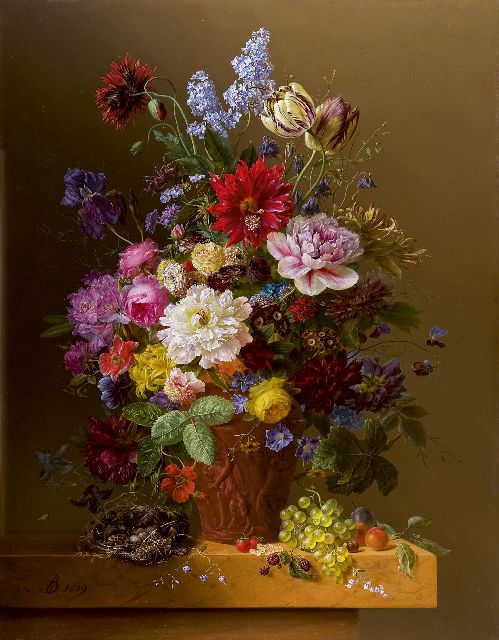 Arnoldus Bloemers was gespecialiseerd in het schilderen van stillevens met bloemen, vruchten en dood wild in de trant van Jan van Huysum en Jan van Os. De schilder had een liefhebberij in het kweken van bloemen, waardoor hij zijn ‘modellen’ ruimschoots voorhanden had. Met name door het verfijnde penseelgebruik en de grote natuurgetrouwheid wordt zijn werk hoog aangeslagen. J. Immerzeel schrijft in zijn kunstenaarslexicon (1855) over hem: ‘Zijn werk behaagt niet alleen door de losse en aangename voordracht en frischheid van kleuren, maar ook door de zorg, welke aan deszelfs uitvoering besteed is.’