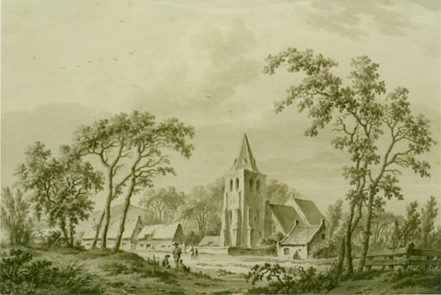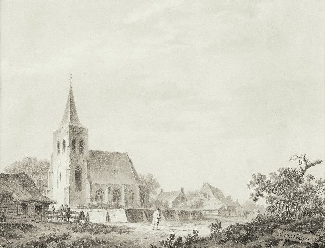 Nederrijns winterlandschap met kerkje, geïnspireerd op de dorpskerk te Aerdt