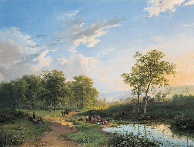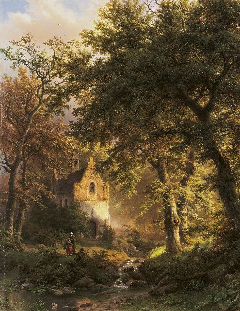 Barend Cornelis Koekkoek, door zijn tijdgenoten ‘Prins der landschapschilders’ genoemd, leek als oudste zoon voorbestemd om zijn vader Johannes Hermanus op te volgen als marineschilder. De beginselen van de schilderkunst leerde Barend Cornelis van zijn vader, stamvader van vier generaties schilders in de familie Koekkoek, terwijl hij tegelijkertijd lessen volgde aan de Middelburgse academie, kweekvijver voor schilders van zee en schepen. Met deze afkomst en opleiding zou een specialisatie in marines geen verbazing hebben gewekt. Barend Cornelis verkoos echter het land boven de zee. Al in 1822, op een tentoonstelling in zijn geboorteplaats Middelburg, wordt duidelijk aan welk genre hij de voorkeur geeft. Zijn inzending bestaat dan uit zes landschapsaquarellen, kopieën naar 17e-eeuwse meesters, maar al spoedig vindt hij zijn eigen weg. Zijn opleiding krijgt een vervolg aan de academie in Amsterdam, waar hij van 1822 tot 1825 studeert als leerling van Jean Augustin Daiwaille, zijn latere schoonvader, en Jan Willem Pieneman. Komt Barend Cornelis’ verrassende keuze voor de landschapschilderkunst voort uit oorspronkelijkheid en eigenzinnigheid, eigenschappen die een groot kunstenaar kenmerken, of was hem de wind uit de zeilen genomen door zijn broers Johannes en Hermanus? Hoe het ook zij: buitengewone artistieke begaafdheid en bezieling hebben hem een succesvol kunstenaar gemaakt, schepper van landschappen die tot in koninklijke kringen zó geliefd waren dat er een wachtlijst voor ontstond en liefhebbers jarenlang moesten uitzien naar hun zo begeerde schilderij.
