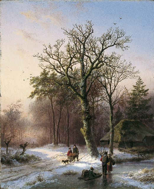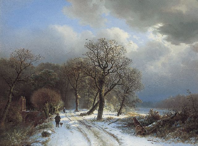 De winter is bij Barend Cornelis Koekkoek ondergeschikt aan de zomer: naar schatting schilderde hij zo’n honderd sneeuw- en ijsgezichten, ongeveer een vijfde deel van zijn oeuvre. Het is opvallend dat Koekkoek zich specialiseerde in het zomerlandschap, terwijl zijn tijdgenoot en evenknie Andreas Schelfhout – door Barend Cornelis zeer bewonderd – vooral vermaard was om zijn minutieus geschilderde schaatstaferelen. Anders dan in de meeste winters van Schelfhout, of die van zijn 17e-eeuwse voorganger Hendrick Avercamp, laat Barend Cornelis in zijn vroegste sneeuwlandschappen niet het geanimeerde ijsvermaak zien, maar verbeeldt hij de stilte in de natuur wanneer zij in wit is gehuld. Vanaf de jaren dertig zijn de winters levendiger gestoffeerd, en doen schaatsers op bevroren sloten, vaarten en meren hun intrede, waardoor ze meer overeenkomst gaan vertonen met de composities van Schelfhout. De winters van Barend Cornelis zijn echter veelal rijker aangekleed met bomen, bosschages en kastelen of ruïnes. De majestueuze eik komt in vrijwel al zijn schilderijen voor, en is daardoor bijna zijn beeldmerk. Deze boom is het symbool van kracht, macht en onvergankelijkheid, staat voor onsterfelijkheid en eeuwig leven. In Barend Cornelis’ schilderijen benadrukt zijn aanwezigheid tevens de nietigheid van de mens ten opzichte van de natuur. Het winterlandschap gaf Koekkoek de gelegenheid om zijn geliefde, duizendjarige Wodanseik met diens grillige takkenstructuur in al zijn kale glorie te vereeuwigen. Net als zeventiende-eeuwse schilders werkte hij niet direct naar de natuur. Door tekeningen te combineren die hij maakte tijdens zijn reizen, stelde de meester zijn ideale romantische landschappen in zijn atelier samen.
