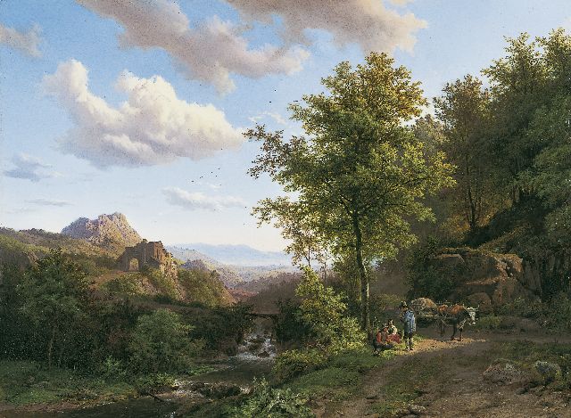 Aanvankelijk schilderde Barend Cornelis zijn landschappen in Holland. Doordat hij studiereizen ondernam naar België, Luxemburg en het Rijnland, naar de Harz en naar Zwitserland, op zoek naar motieven voor romantische motieven voor zijn schilderijen, kreeg zijn werk een ander, buitenlands en heuvelachtig aanzien en werden boomrijke panoramische landschappen gestoffeerd met kastelen, ruïnes, stroompjes en riviertjes in rotsachtige beddingen. In zijn zomers is vaak het Duitse Middelgebergte het decor. Uit zijn boek ‘Herinneringen en Mededeelingen van eenen Landschapschilder’ blijkt hoezeer de schoonheid van het Duitse Rijnlandschap hem raakte, vooral het gebied van het Zevengebergte met de beroemde Drachenfels. In bijna extatische bewoordingen vertelt hij hierover: ‘Eindelijk, hier wordt de blik een bergachtig landschap met eenen statigen stroom, die in honderd bogten door hetzelve heenkronkelt, aangeboden, en dit alles doet gewaarwordingen in de ziel ontstaan, waarbij de mensch, in weemoedige stemming, zich toch zoo wel gevoelt. Gij denkt u niet meer op den aardbol te staan, die hier zijner rijkste en schoonste landschappen ten toon spreidt. De weergave van figuren, lucht, water- en boompartijen beheerste Koekkoek tot in de perfectie en zijn landschappen tonen een geraffineerde lichtinval en enorme dieptewerking.