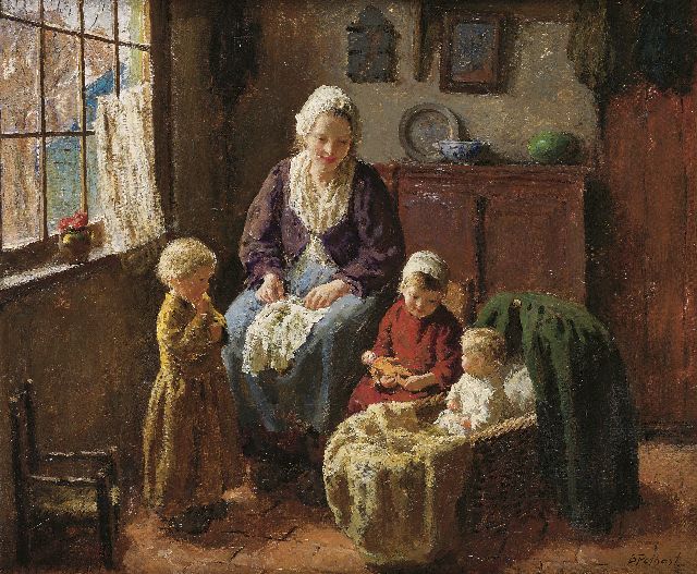De van origine Belgische schilder Bernard Pothast woonde en werkte eerst in Amsterdam en vestigde zich in 1911 in Laren. Daar sloot hij zich aan bij de Larense School, waar eerder schilders als Hendrik Kever en Albert Neuhuys deel van uitmaakten. Hij schilderde er het leven van de eenvoudige boerenbevolking in en om de boerderij en op het land. Vooral zijn interieurs met boerenvrouwen en kinderen stralen een serene rust uit.