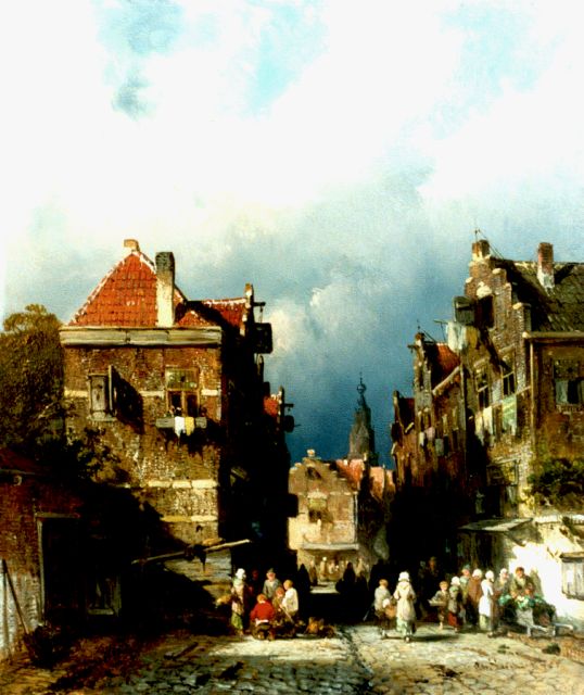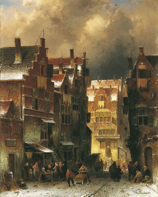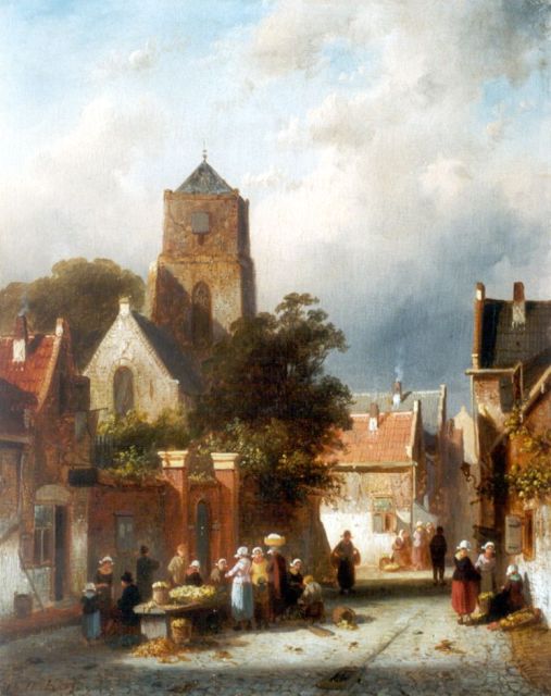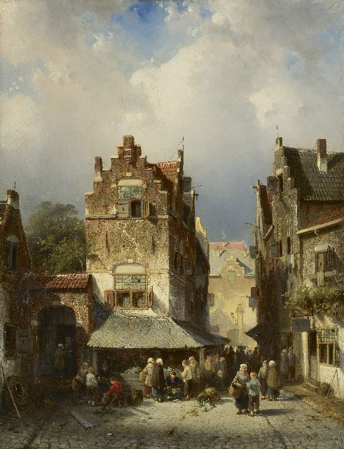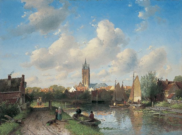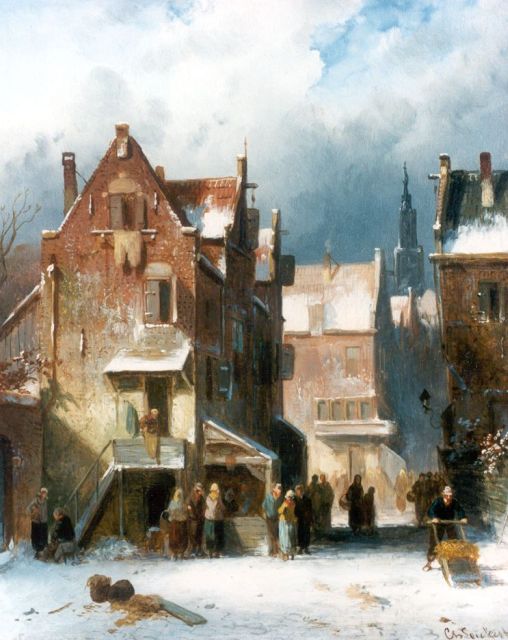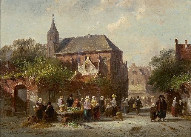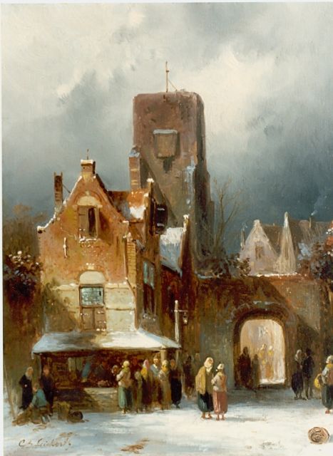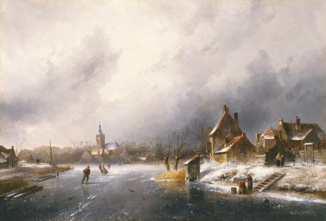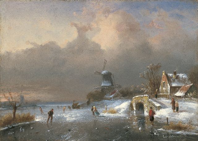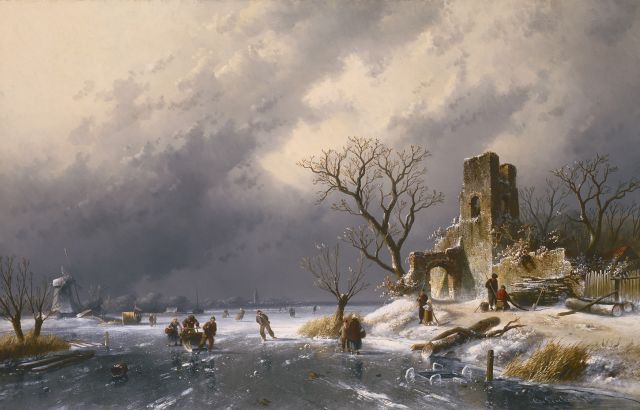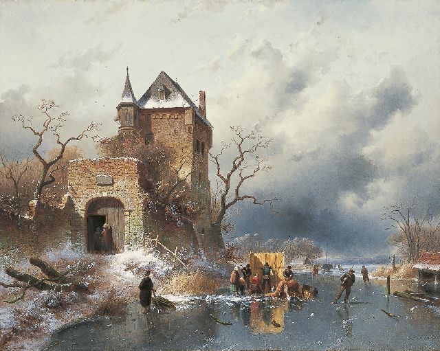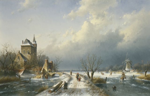 Charles Leickert was korte tijd leerling van W.J.J. Nuijen en vanaf 1839 van Andreas Schelfhout. Vooral deze laatste meester had veel invloed op zijn werk. Leickert schilderde prachtige Hollandse ijsgezichten, zomerse landschappen en riviergezichten waarin hij allerlei motieven verwerkte uit zijn schetsboeken. Na 1845 schilderde hij ook strandtaferelen en stadsgezichten. De aantrekkingskracht van zijn schilderijen wordt onder andere bepaald door de lichtval en sterk verhalende details. Leickert was een echte vakman, die op knappe wijze de juiste stemming kon weergeven en daarmee de smaak van het publiek goed aanvoelde. Zijn wintergezichten zijn echt koud, zijn zomers zonnig en groen.