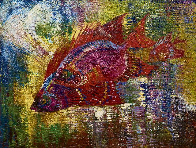 Chris Lanooy | Drie vissen, olieverf op paneel, 31,0 x 40,0 cm