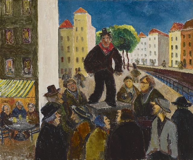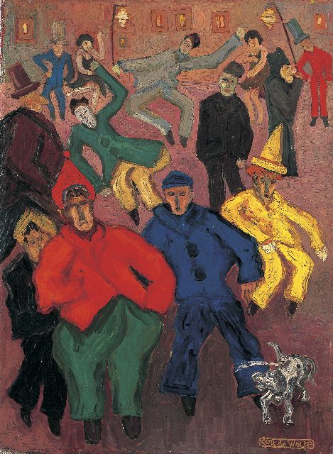 De schilder-graficus Cor de Wolff begon zijn artistieke carrière als kunstnijveraar - met name als maker van batiks en houtsnedes - en begon pas op latere leeftijd te schilderen. Zijn honger naar beweging en kleur uitte hij in vitale schilderijen vol fantasie, bevolkt door wonderlijk gevormde figuren, uitbundig in hun gebaren en geschilderd in bonte, vlot aangebrachte kleuren. Kroegjes, volkspret, kermissen en markten waren zijn favoriete onderwerp. In zijn schilderijen is tegelijkertijd iets vrolijks en karikaturaals te vinden. 'Het liefst zou ik met een poppenkast er op uittrekken om aan burgers, boeren en buitenlui te laten zien hoe raar en hoe vermakelijk het leven is', heeft hij eens gezegd. In zijn kunst laat hij dat zien. Cor de Wolff reisde veel en woonde langere tijd in Engeland, België en Parijs.