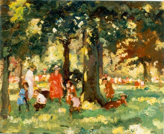 Cor Noltee | Zomer in het park, olieverf op doek op paneel, 31,7 x 39,2 cm, gesigneerd l.o.