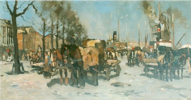 Cor Noltee | Paard en wagen in haven, olieverf op doek, gesigneerd r.o.