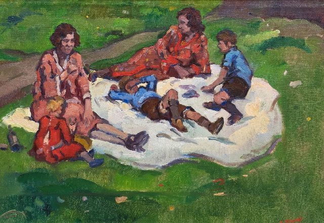 Cor Noltee | Zomerse picknick, olieverf op doek, 34,5 x 49,0 cm, gesigneerd r.o.