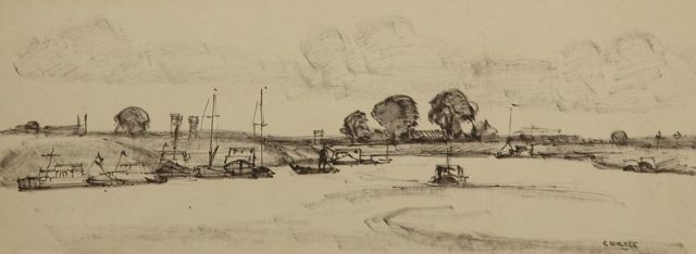 Cor Noltee | In de Biesbosch, viltstift op papier, 11,9 x 31,6 cm, gesigneerd r.o.