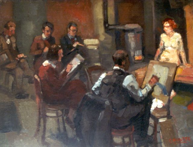 Cor Noltee | De schildersklas, olieverf op doek, 34,0 x 45,0 cm, gesigneerd r.o.