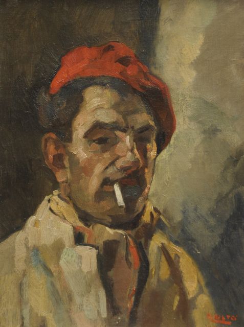 Cor Noltee | Zelfportret van de kunstenaar met rode baret, olieverf op doek, 40,7 x 30,5 cm, gesigneerd r.o.