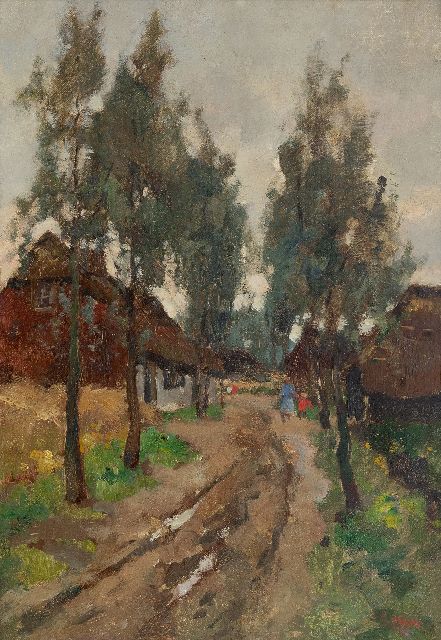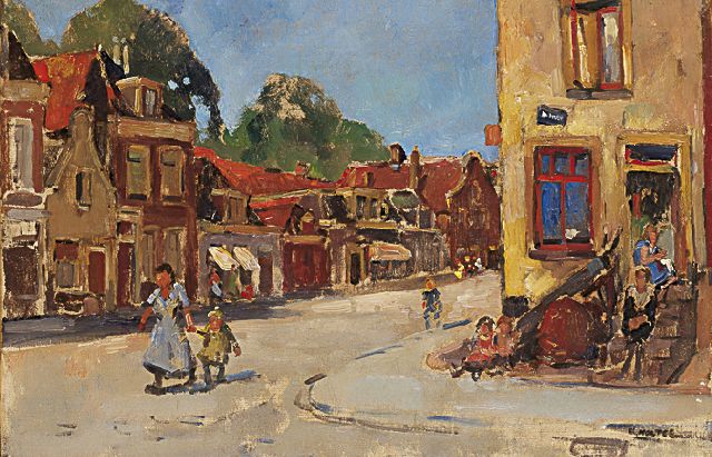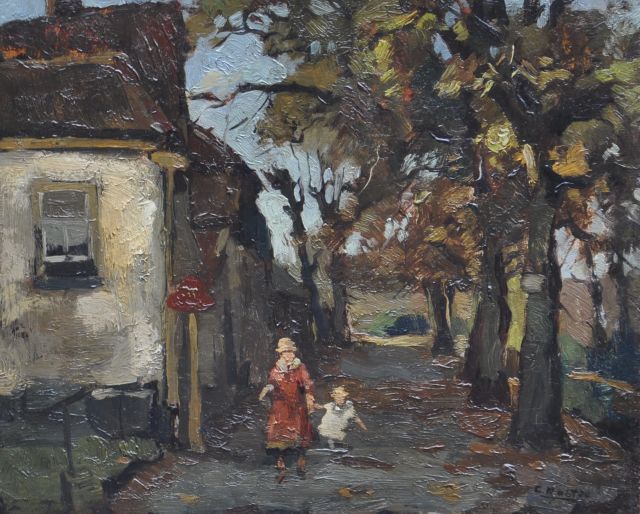 Cor Noltee | Dorpslaantje met moeder en kind, olieverf op doek, 50,2 x 35,1 cm, gesigneerd r.o.