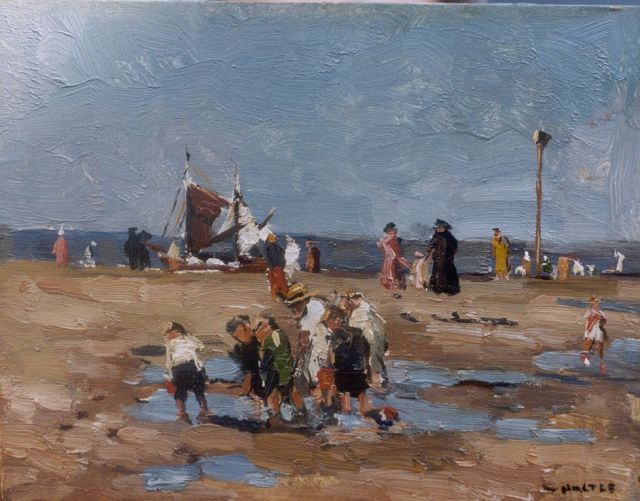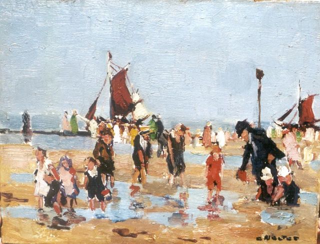 Cor Noltee | Pootjebadende kinderen, olieverf op schilderskarton, 19,0 x 24,2 cm, gesigneerd r.o.